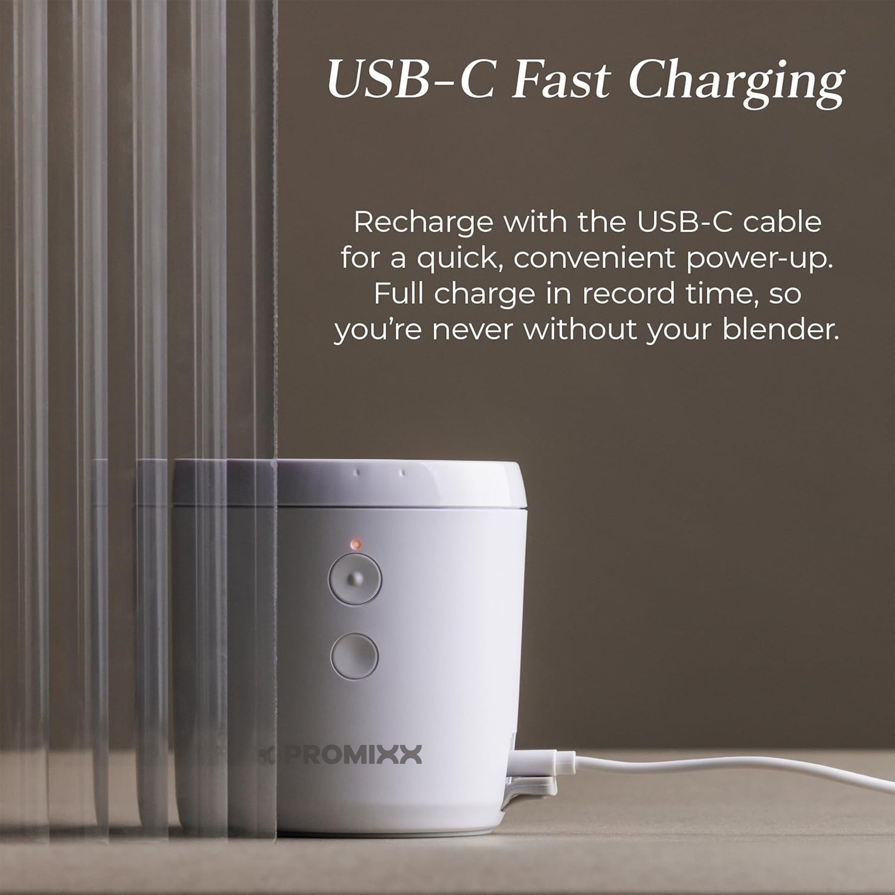 With USB-C fast charging, SENSE powers up quickly, delivering multiple blends on a single charge. Bi-directional blades deliver perfect consistency, and pre-programmed cycles make every blend intuitive and effortless. What's more, safety is built into every detail - SENSE won’t operate unless the lid is securely in place, so you can blend confidently, every time.